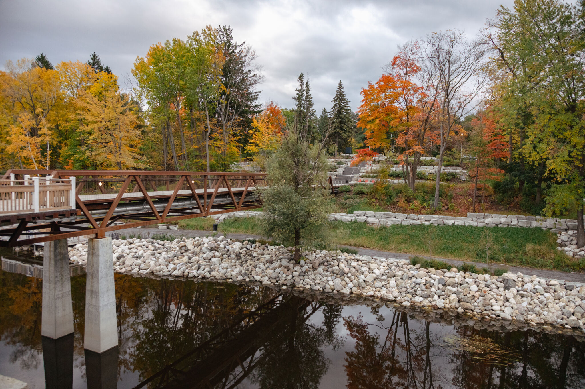 Le parc des Commissaires, au lac Dow’s, est bien connu pour ses tulipes au printemps. Mais à l’automne, ce sont ses feuillages flamboyants qui volent la vedette. Les nombreux arbres matures y offrent un spectacle saisissant qui se poursuit à la Ferme expérimentale centrale et à l’Arboretum du Dominion d’Ottawa.